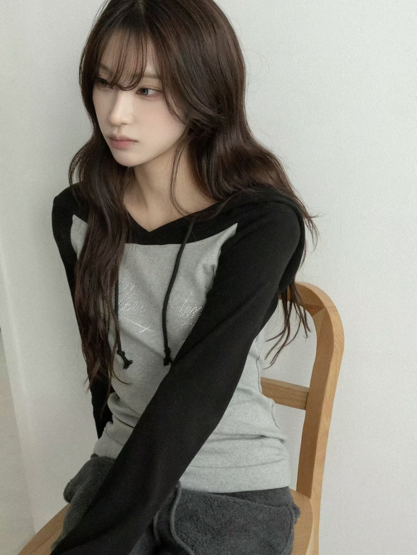 露肩拼色連帽衛衣 Off-Shoulder Color Block Hoodie