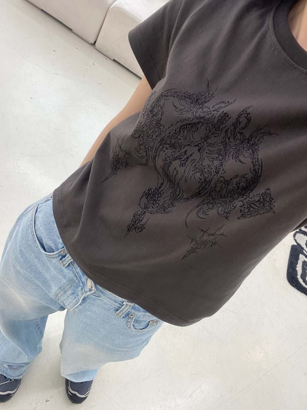 愛心圖騰印花短袖上衣 Heart Totem Print Short Sleeve Top