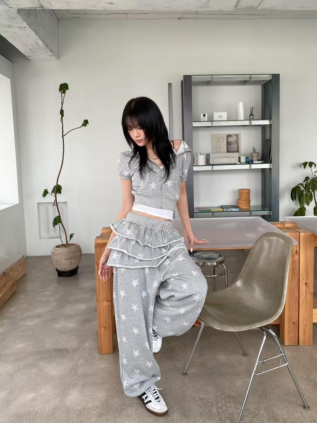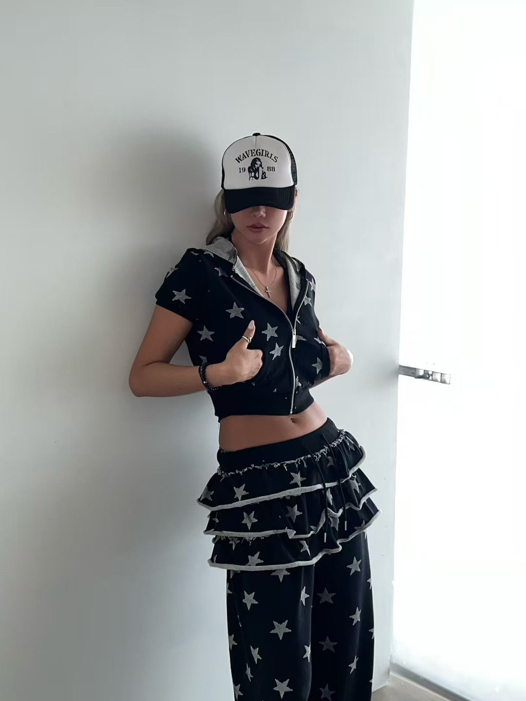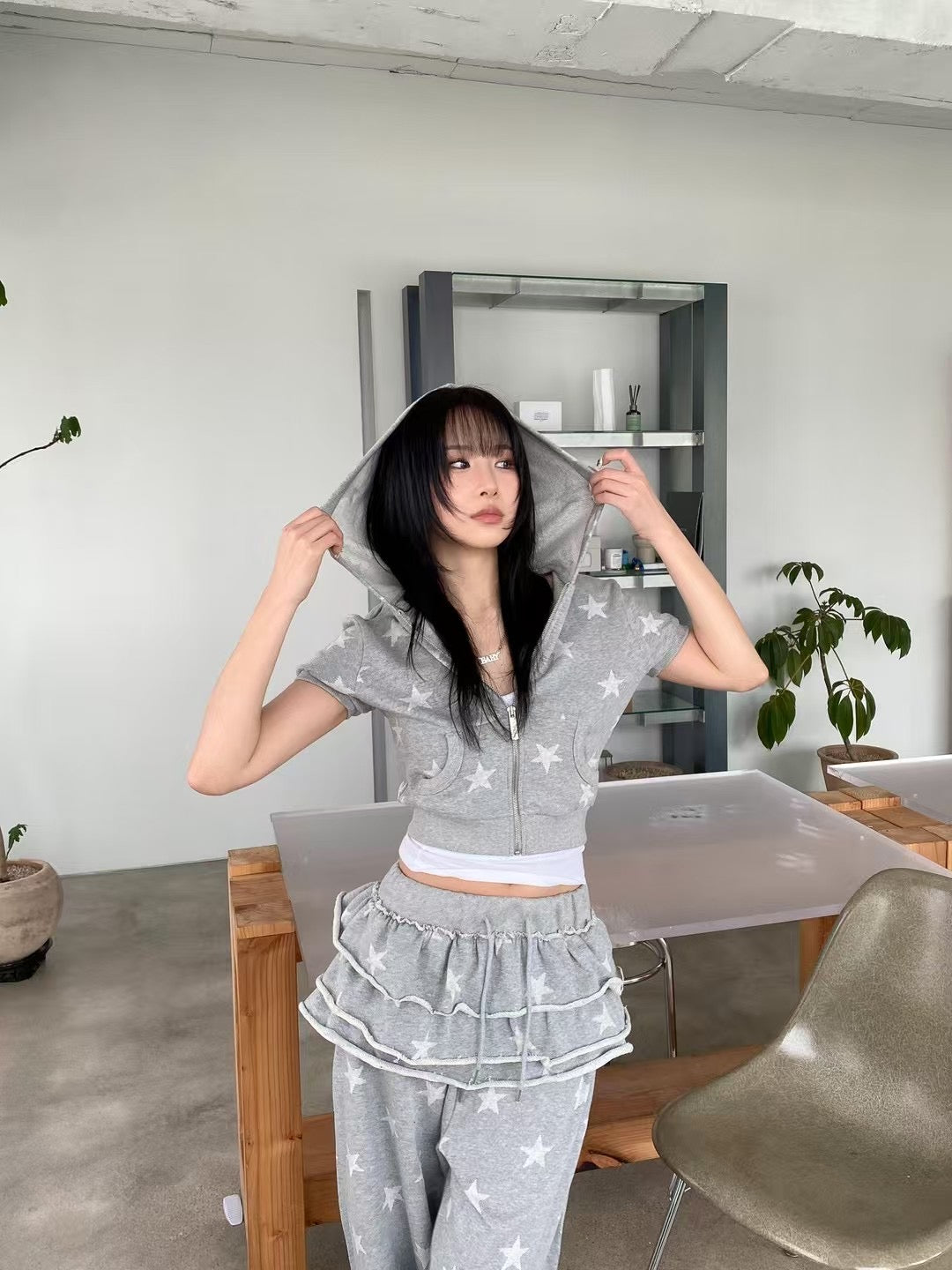星星印花連帽短袖上衣 Star Print Hooded Short Sleeve Top