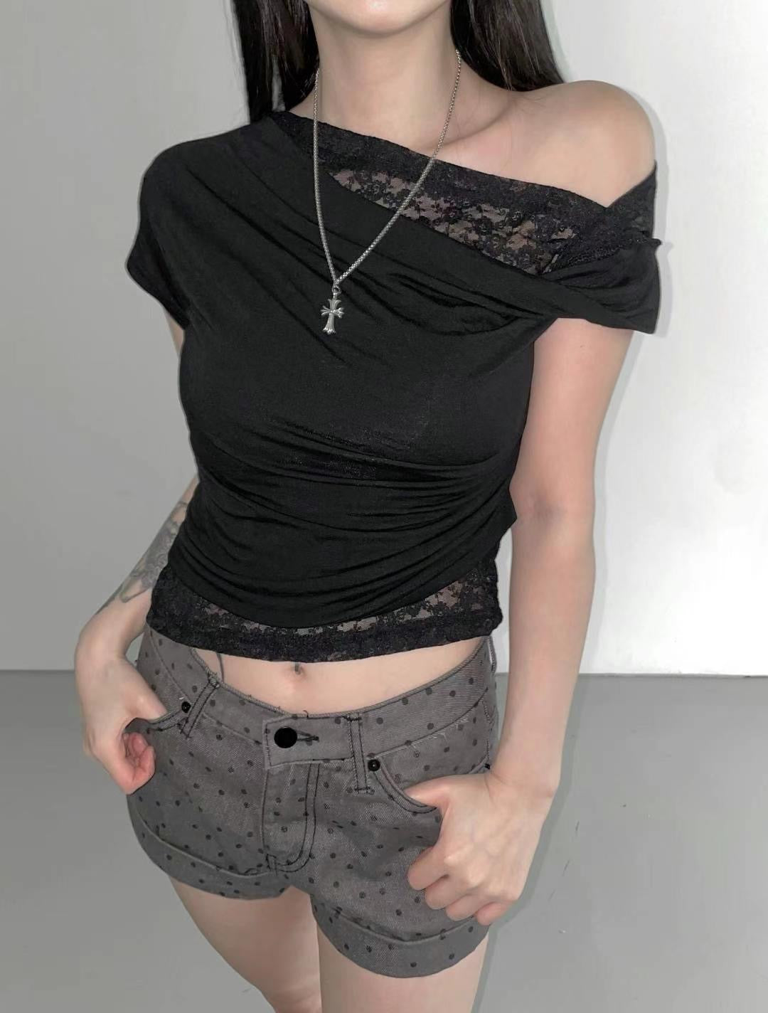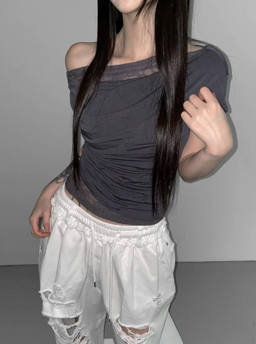 蕾絲皺摺短袖 Lace Pleated Short Sleeves