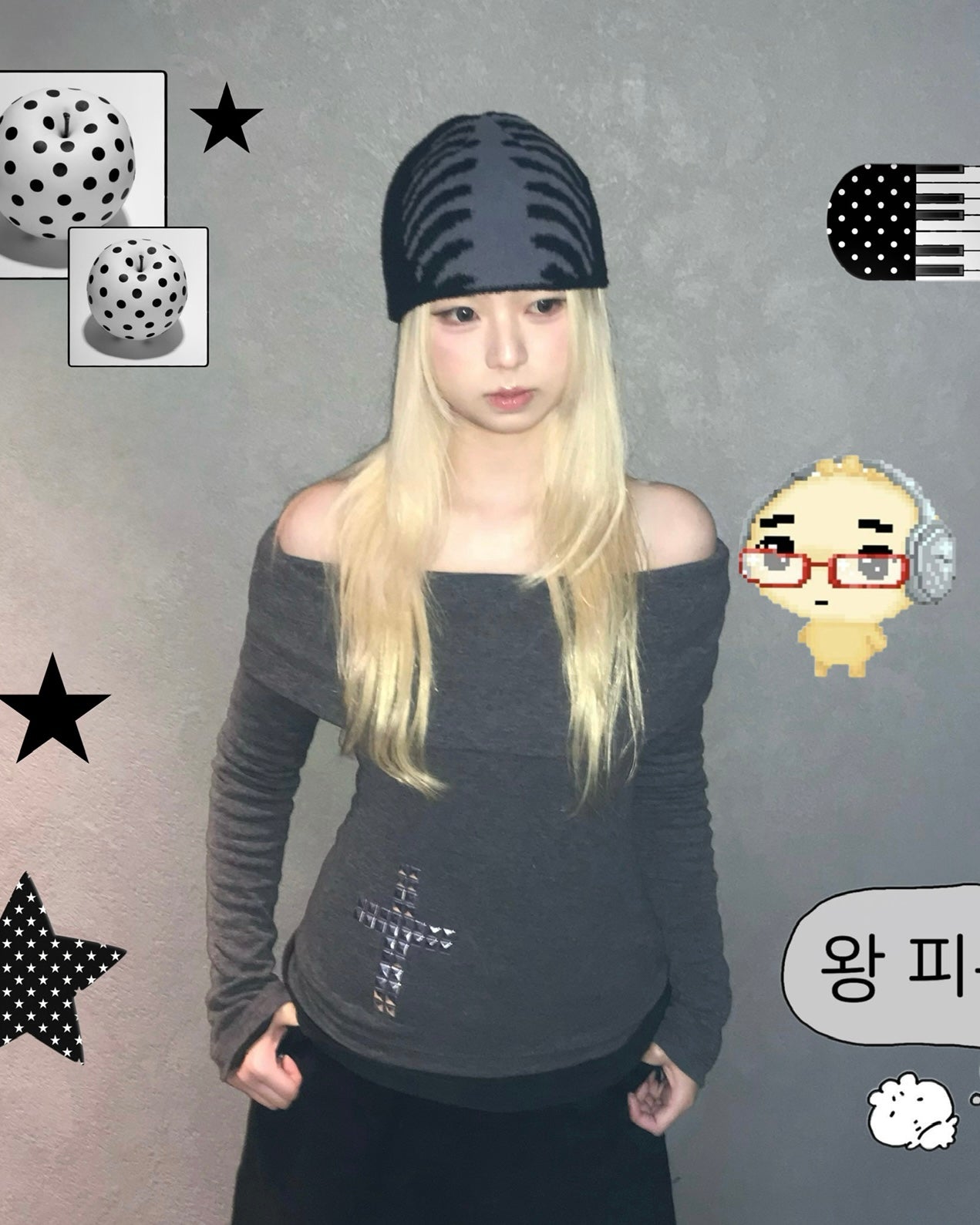 鉚釘十字架一字肩 Rivet Cross One-Shoulder Top