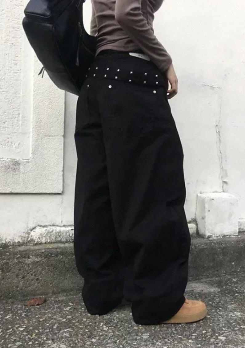 鉚釘腰帶彎刀褲 Rivet Belt Embroidery Wide Pants