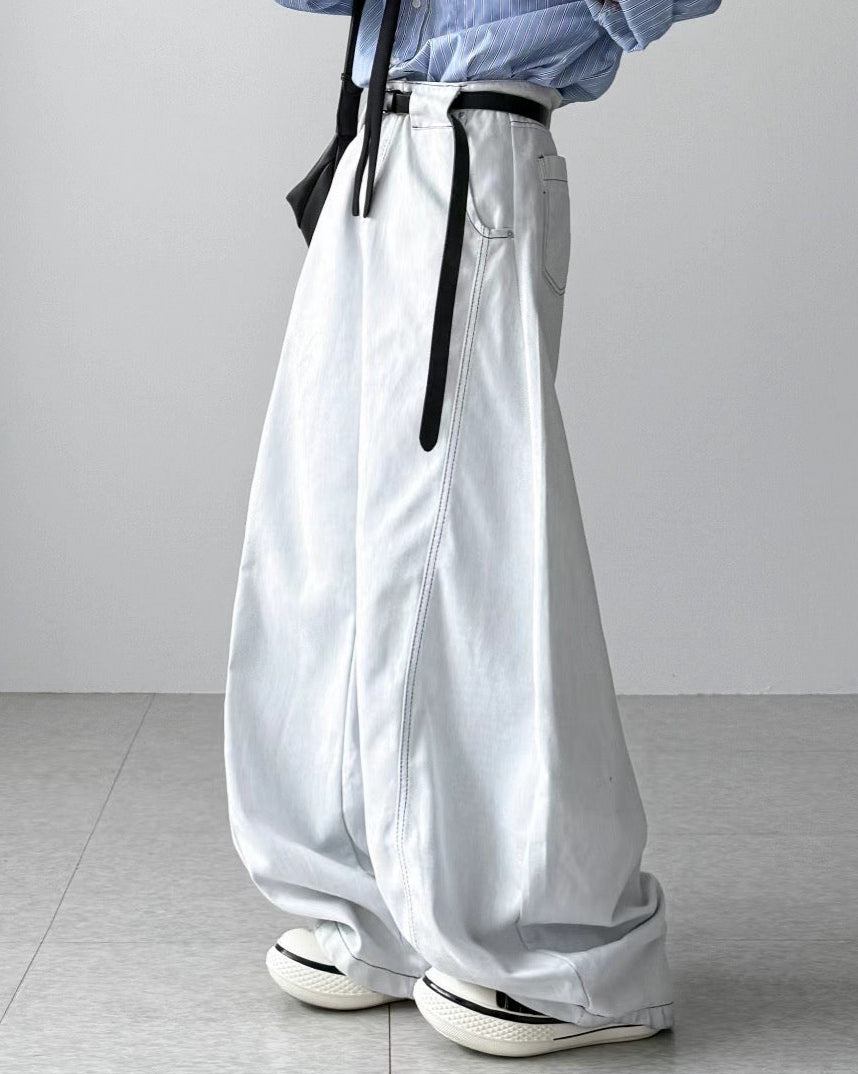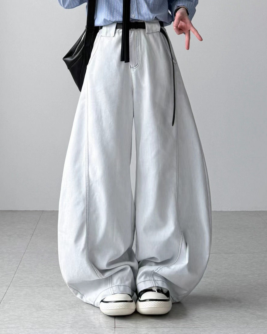 【Unisex】水洗彎刀牛仔褲 Washed High-rise Barrel-leg Jeans