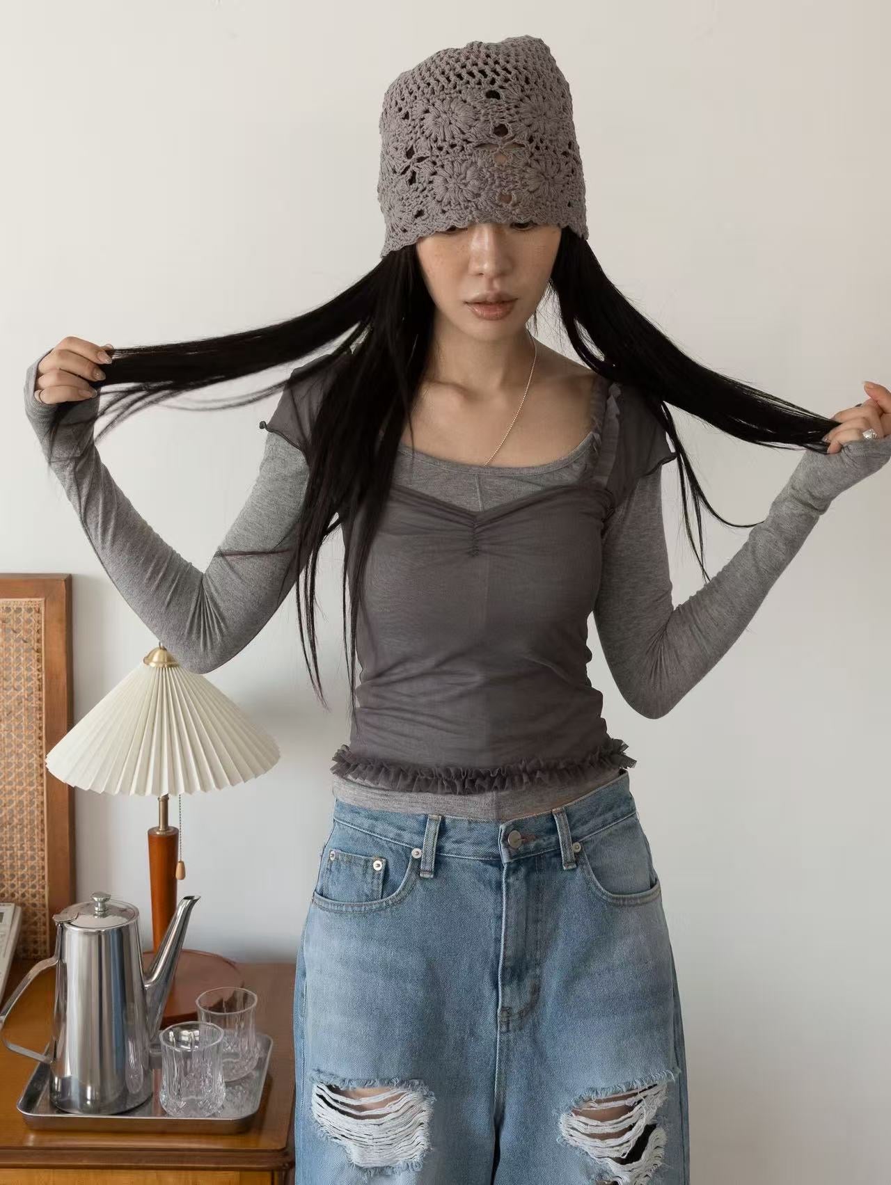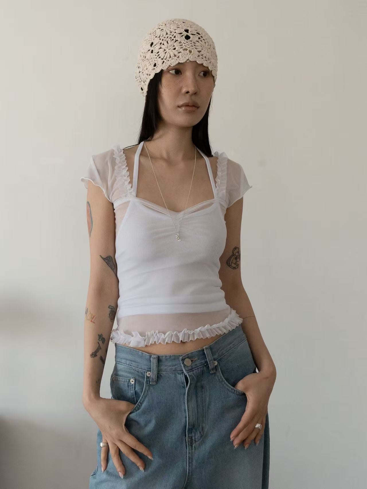 木耳邊蕾絲透膚上衣 Ruffled Lace Top