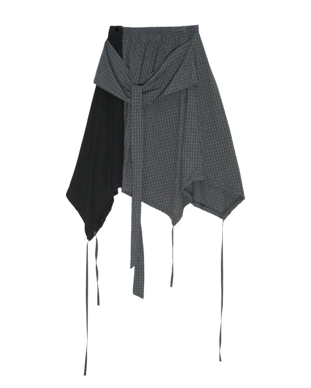 不對稱拼接蝴蝶結系腰中裙 Asymmetric Patchwork Bow Midi Skirt