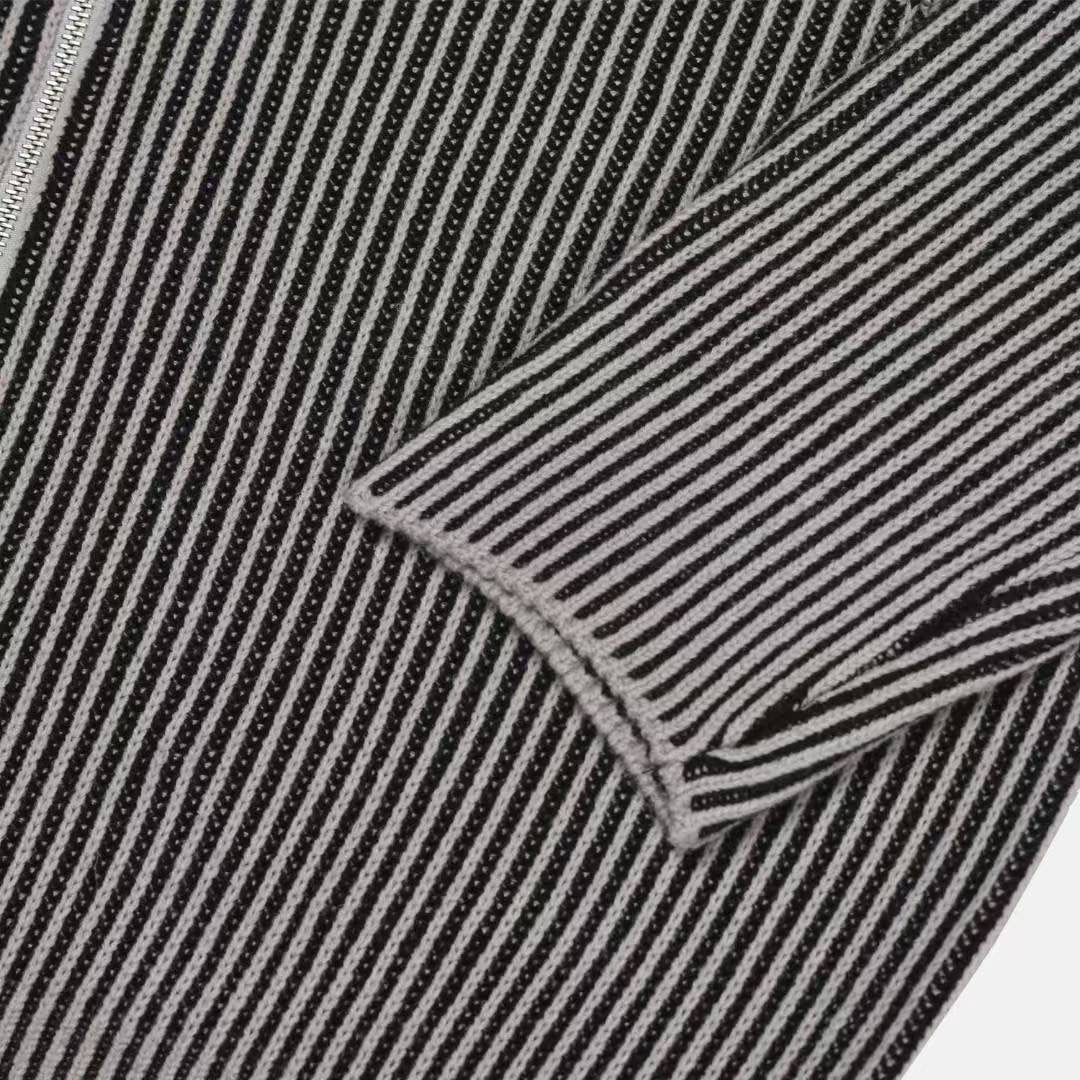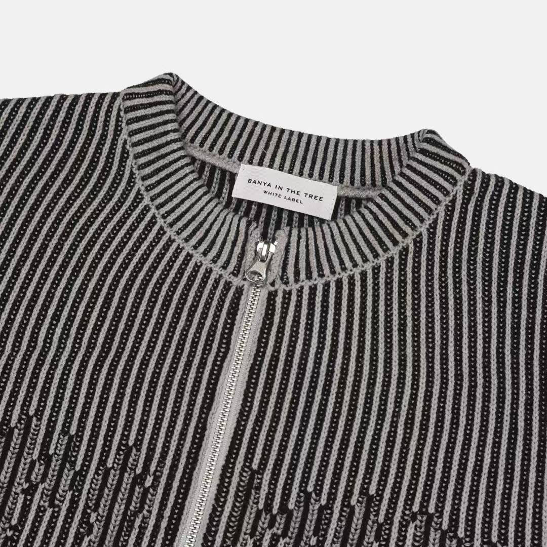 【Unisex】條紋雙拉鍊針織外套 Striped Double-Zip Knit Jacket