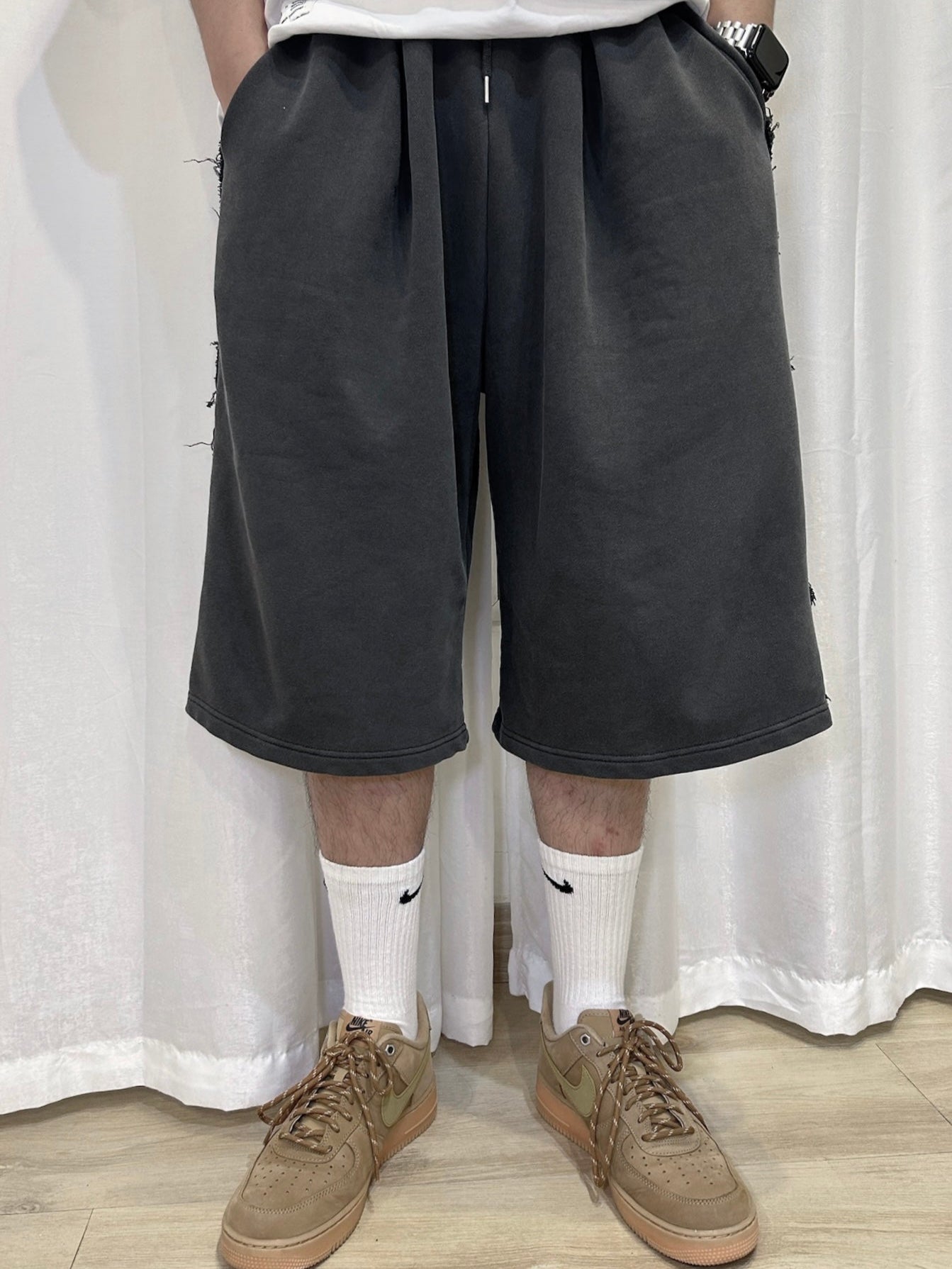 【Unisex】牛仔毛邊五分棉褲 Denim Raw Edge Cotton Trousers