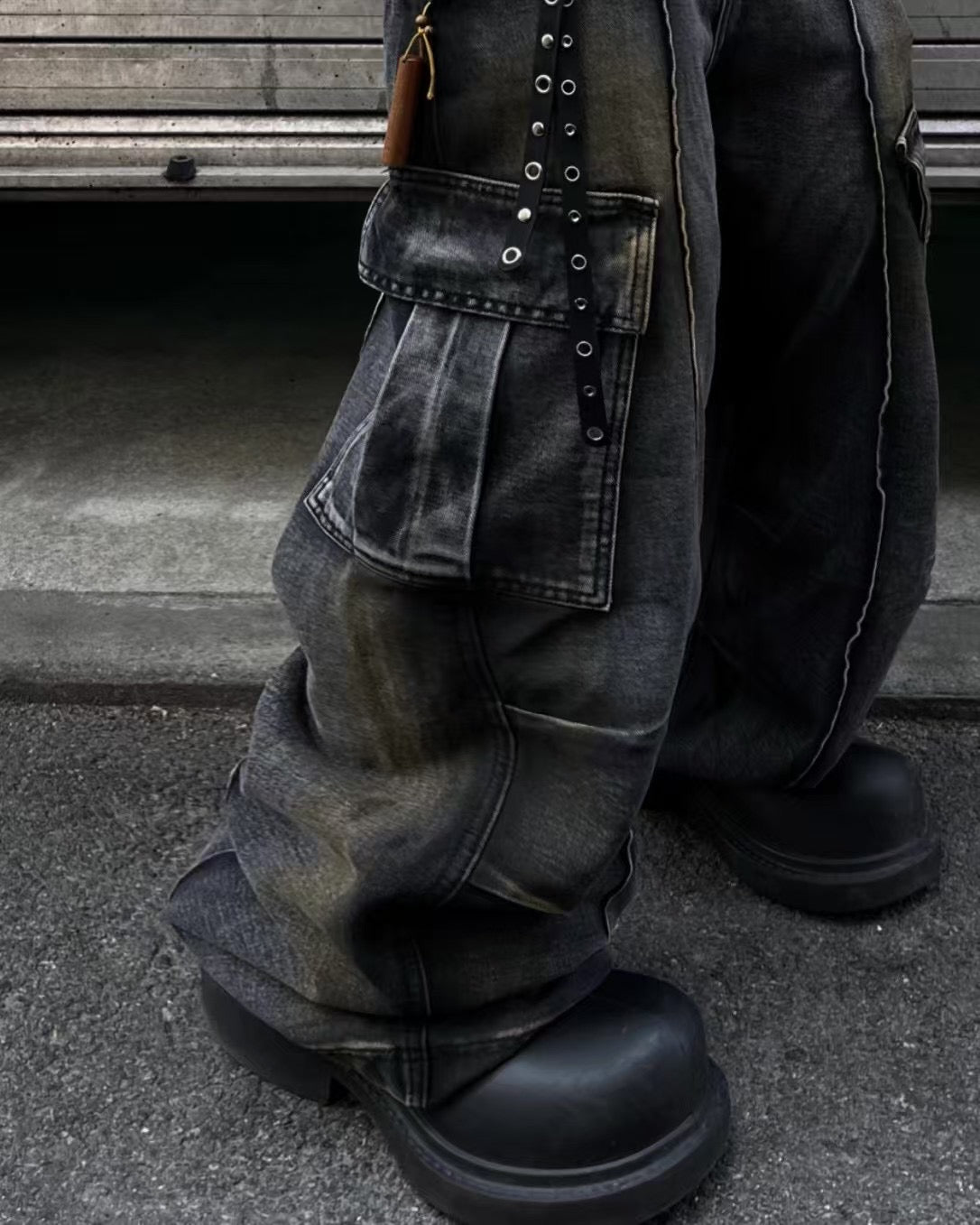 【Unisex】重工水洗牛仔寬褲 Washed Denim Baggy Jeans